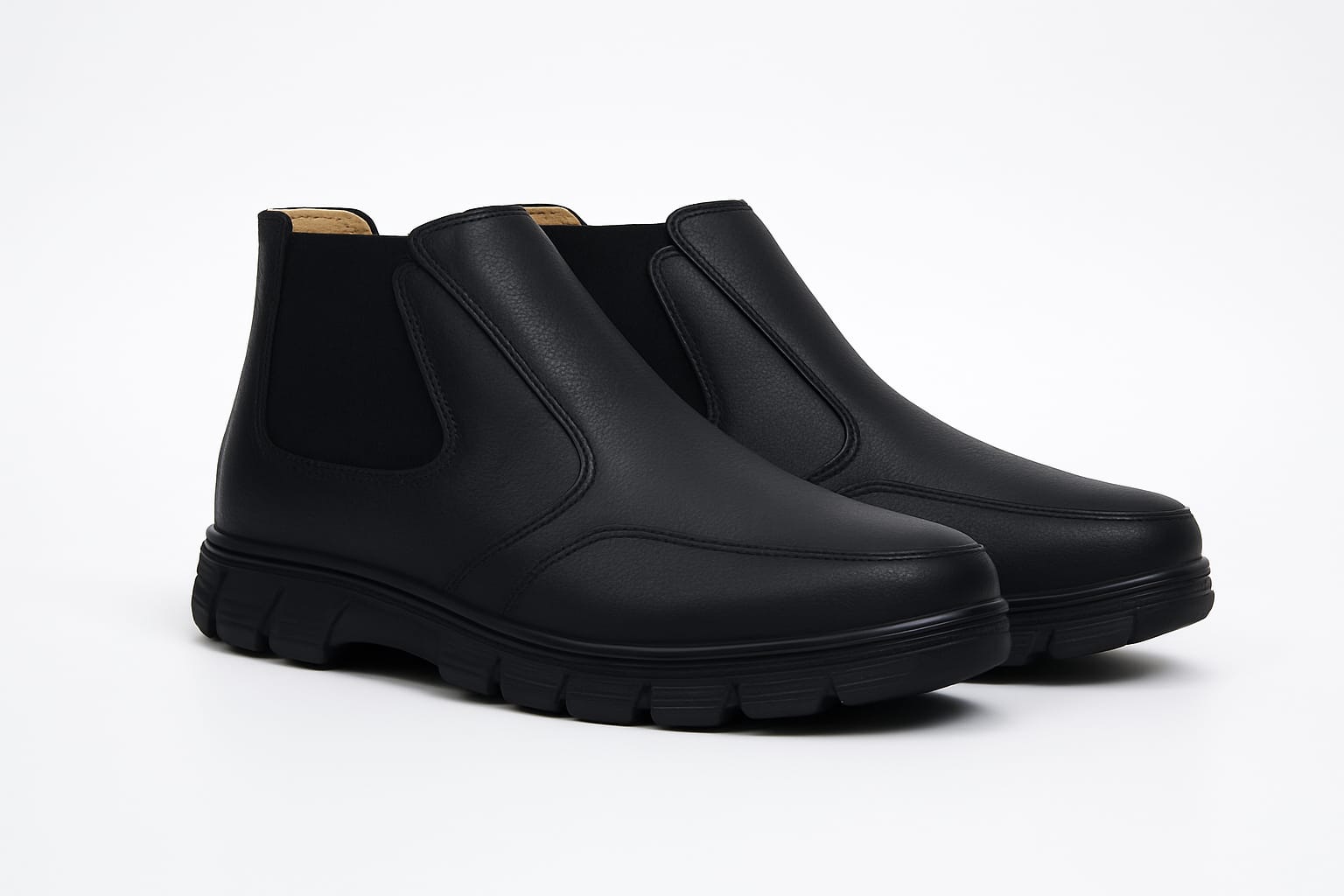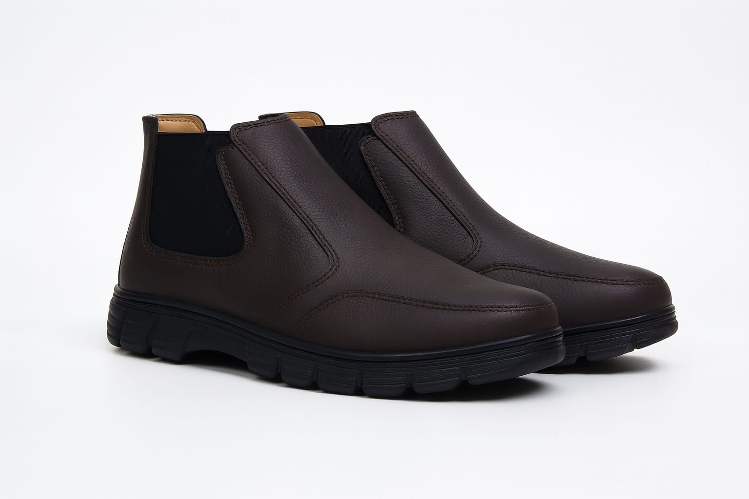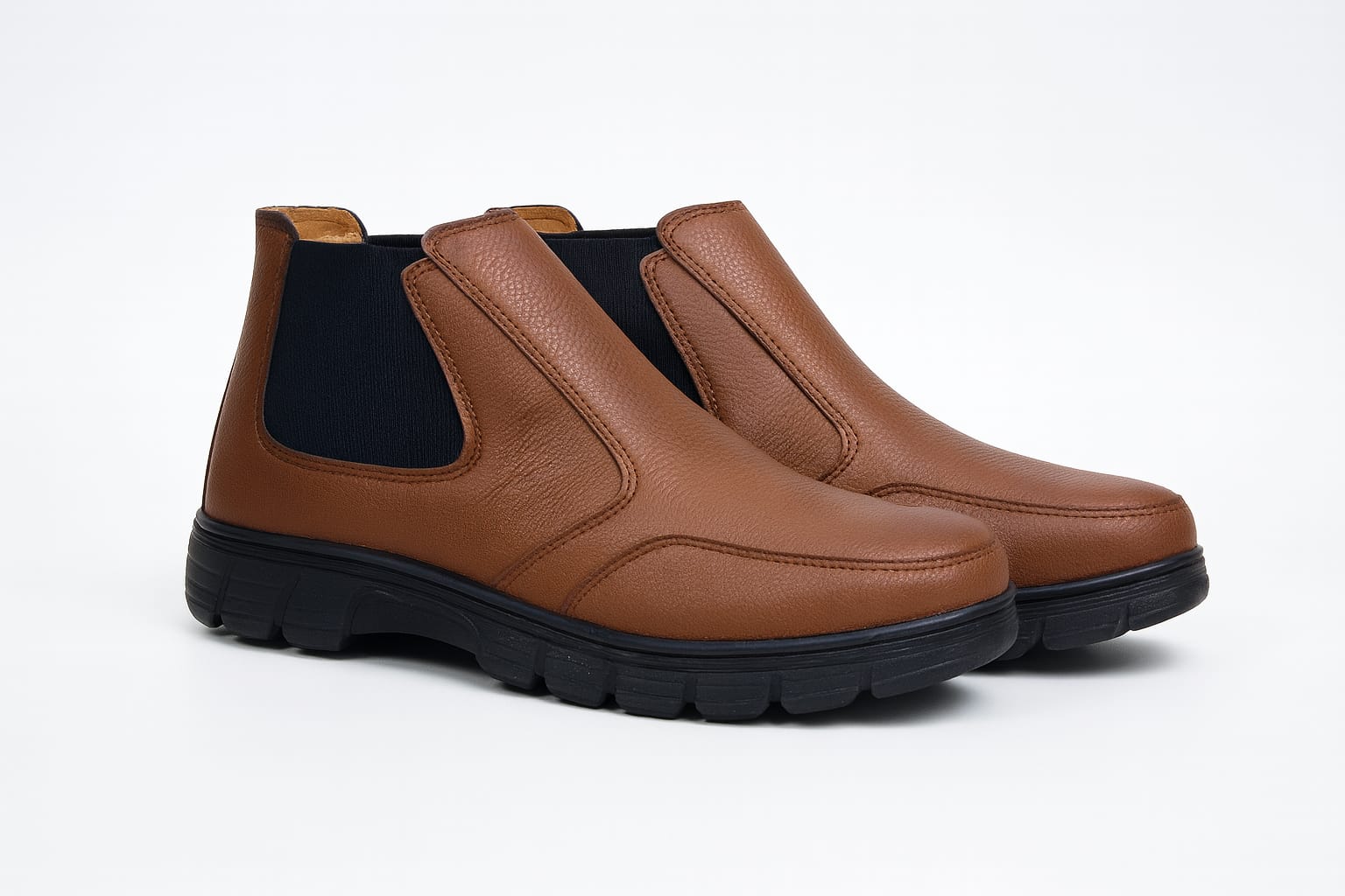 حذاء رجالي نصف ساق من جلد صناعي نخب، مريح بفضل التبطين الداخلي الناعم، مع خياطة قوية ونعل ربر عملي للاستخدام اليومي. تصميم أنيق وجودة عالية